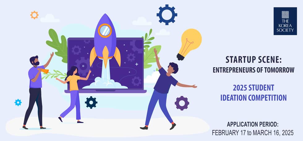 Along with four upcoming programs at The Korea Society this month, we are excited to launch a new student competition for our young entrepreneurs in the audience. Calling all currently matriculated students, applications for the 2025 Student Ideation Competition are open until mid-March. Don't miss the chance to win a grand prize of $1,000 and a travel stipend to visit the Startup Scene Annual Forum in NYC this April!