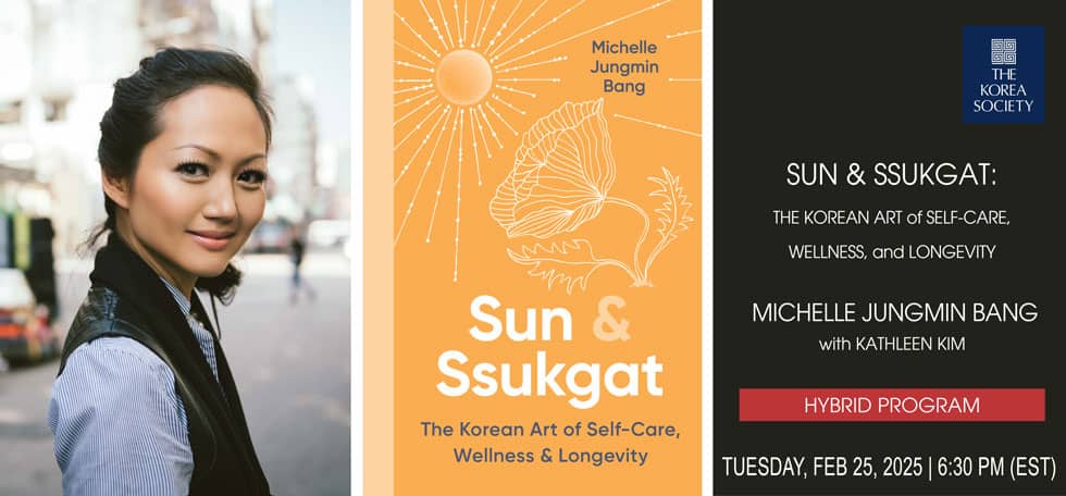 As a Korean-American, Michelle Jungmin Bang grew up in a family of doctors, then spent years traveling, researching, and training in nutrition and preventative care to write and illustrate Sun & Ssukgat: The Korean Art of Self-Care, Wellness, and Longevity. In a conversation at The Korea Society on February 25th, Bang reflects on how we can eat for healing, live sustainably, reconnect with nature, form deeper relationships with the Korean concept of jeong (the warm, invisible connection between loved ones and places), and more.