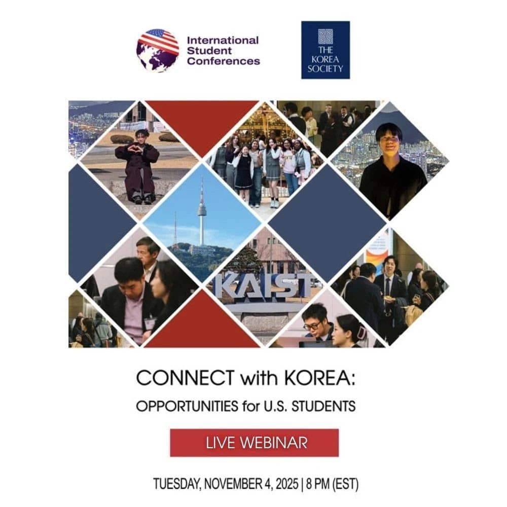 Through a live webinar co-hosted by The Korea Society and International Student Conferences (ISC), we presented a virtual session on November 4th highlighting ways for U.S. college and university students to engage with Korea through a range of Korea-related activities and academic programs, including study abroad opportunities, cultural exchanges, and professional networking. Participants met directly with program representatives to learn more about each initiative featured in this session.