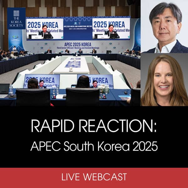 On November 3rd, we were joined by Kate Kalutkiewicz (McLarty Associates), ProfessorJaemin Lee, (Seoul National University), and Scott Jacobs (Coupang) for a rapid reaction analysis of The Asia-Pacific Economic Cooperation Forum 2025 summit. The discussion examines the most significant outcomes in terms of trade and geopolitics, with special emphasis on the US-Korea relationship.