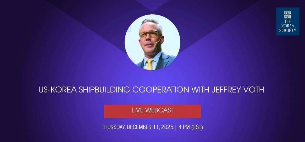 Join us for a conversation on the obstacles and pathways for enhanced US-Korea shipbuilding cooperation with Jeffrey Voth, President of Herren Associates, Inc. and author of the recent article, "The US-ROK test case: Can visas and rules unlock American shipbuilding?" Jeffrey Voth will discuss construction challenges and allied collaboration opportunities in conversation with Korea Society policy director Jonathan Corrado.