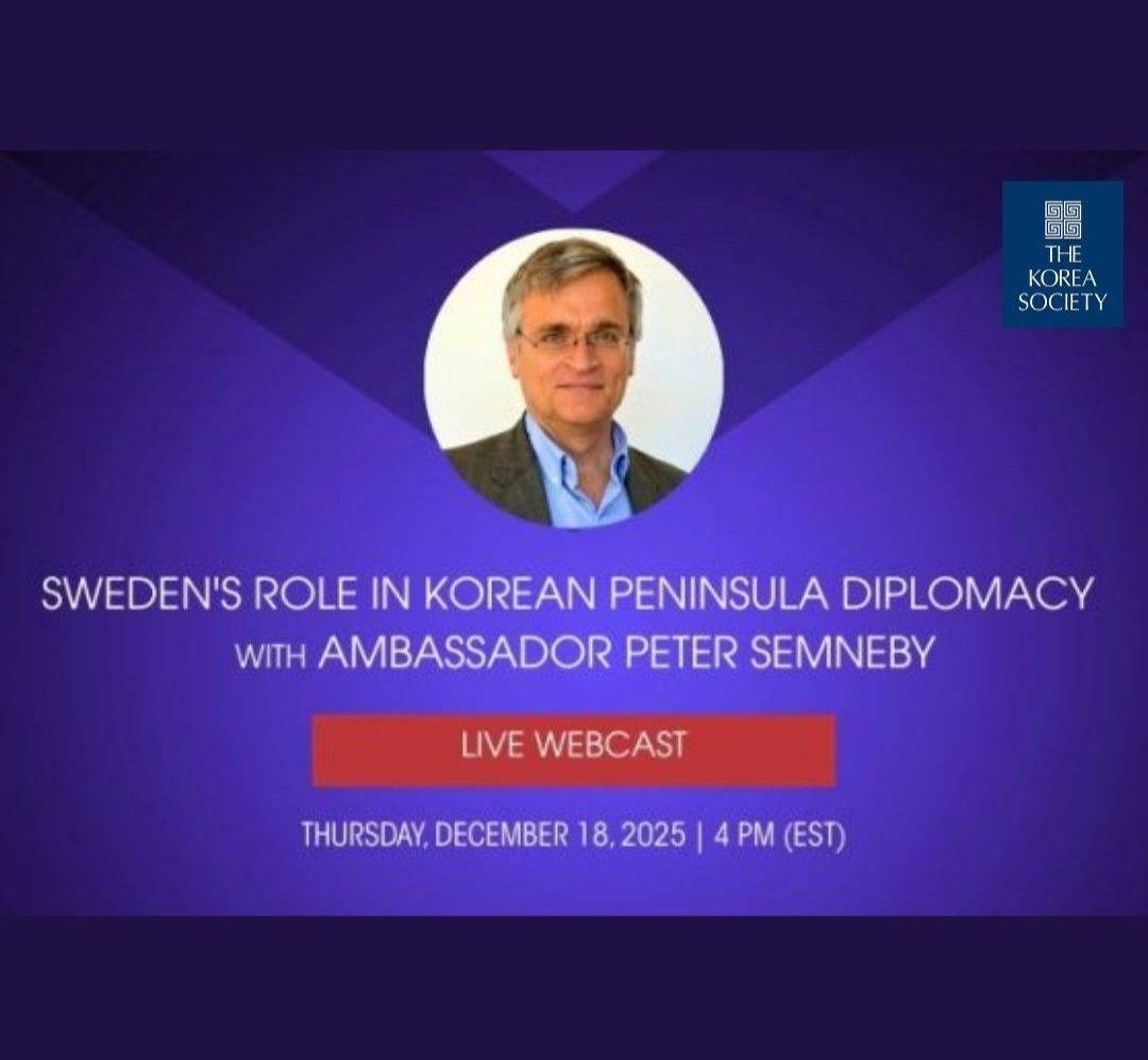 We hosted a discussion with Ambassador Peter Semneby, the Swedish Government's Special Envoy for the Korean Peninsula on December 18th at The Korea Society. In conversation with policy director Jonathan Corrado, Ambassador Semneby will provide a brief overview history of Sweden's role in Korea, examine Sweden's convening capacity as exhibited in 2018-2019, investigate whether Sweden's interests and perspective have been affected by North Korea's involvement in the Russo-Ukraine War and Sweden's ascension to NATO, and explore ideas for how to break the current impasse.