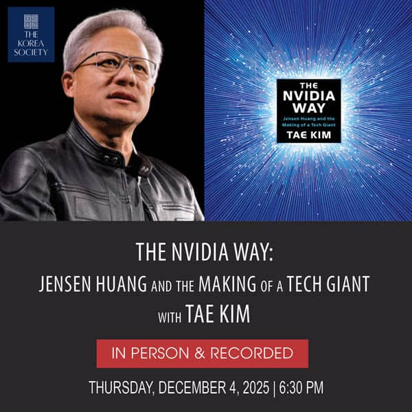 The Korea Society held a conversation on December 4th with Tae Kim, author of The Nvidia Way: Jensen Huang and the Making of a Tech Giant. Now as the world's leading AI chipmaker, Nvidia offers a fascinating window into the new era of global entrepreneurship. This conversation, moderated by our director of business & economics program Sojeong Kim, will take you inside the forces shaping our AI-powered future and offer fresh insights into the culture, strategy, and leadership behind Nvidia's rise as a global technology leader.