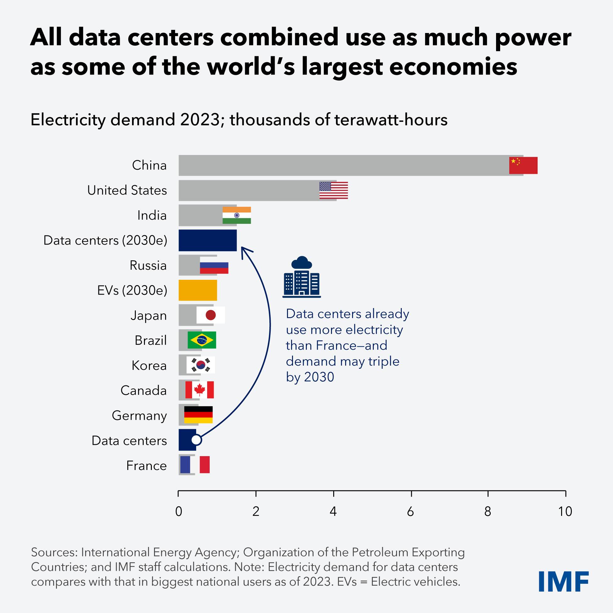 An IMF “Chart of the Week” focused on the energy implications of Artificial intelligence (AI), an emerging driver of productivity and economic growth. The chart points out that electricity used by data centers alone, already as much as that of Germany or France, would by 2030 be comparable to that of India, the world's third-largest electricity user. Data centers’ voracious demand for electricity will have major implications for global electricity demand. See author Tae Kim'sbook talk at The Korea Society on the leading AI chipmaker on December 4, 2025: The Nvidia Way: Jensen Huang and the Making of a Tech Giant.
