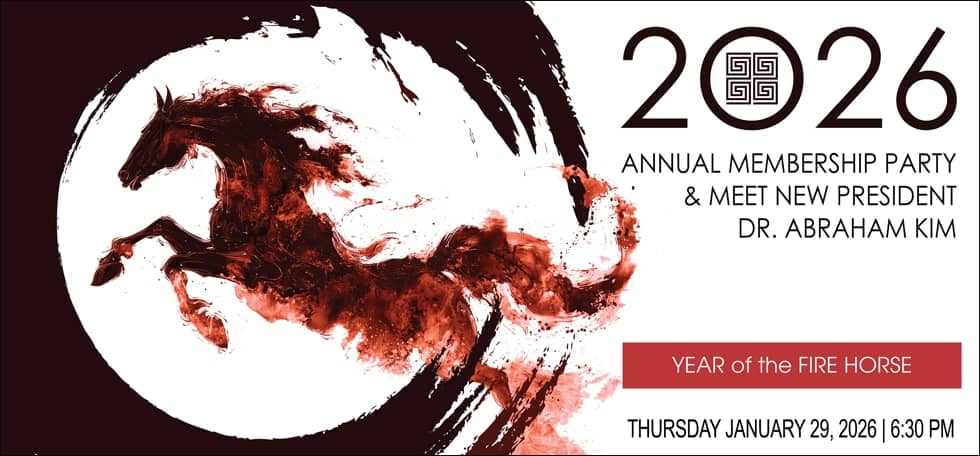 Happy New Year! The Korea Society is pleased to host its 2026 Annual Membership Party at The Korea Society, celebrating our community of members, supporters, and partners. The evening will feature Korean cuisine, live performances, and festive activities, including a raffle and auction. This event will also mark the formal introduction of our new president, Dr. Abraham Kim, an important milestone for the organization.